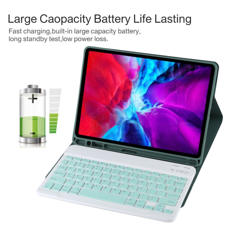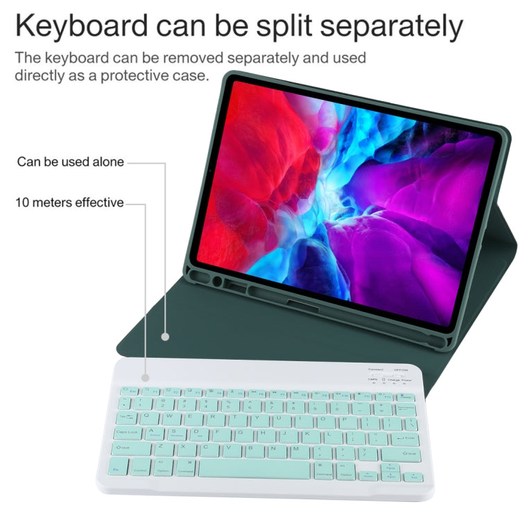 TG11B Detachable Bluetooth Green Keyboard + Microfiber Leather Tablet Case for iPad Pro 11 inch (2020), with Pen Slot & Holder, Green Keyboard