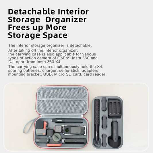 For Insta360 X4 Mini Storage Case PU Bag Sport Camera Protector With Hook, Style 1
