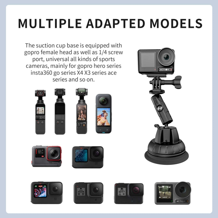 1. Wide Compatibility: This vacuum suction cup base is equipped with an adapter mount for GoPro and a 1/4-inch screw interface, making it compatible with various action cameras, including the GoPro Hero series, Insta360 Go series, X4/X3 series, and Ace series.