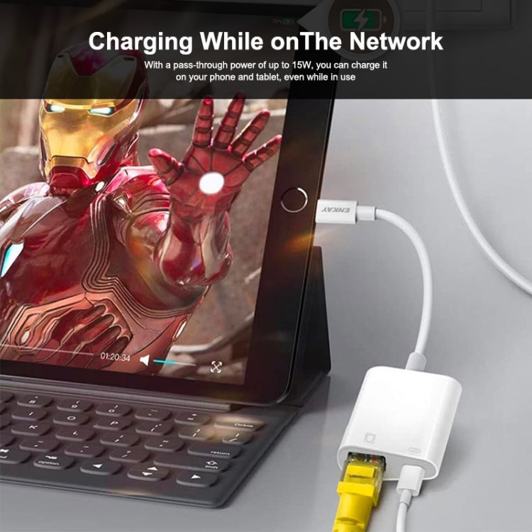 1. 2 in 1 RJ45 Ethernet Adapter: Supports Internet access and charging at the same time.
