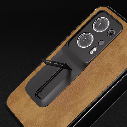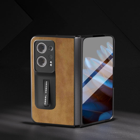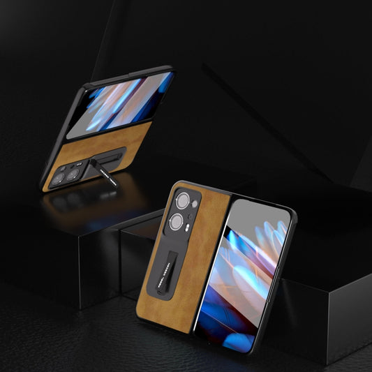 Integrated Retro Litchi Texture PU Phone Case with Holder, For OPPO Find N2