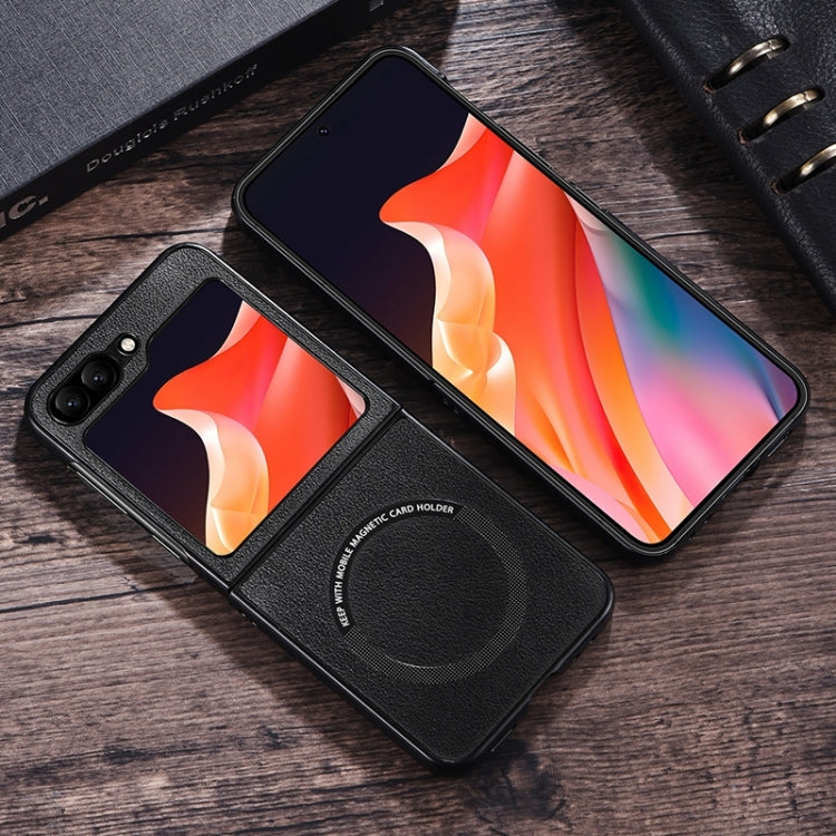 Magsafe Magnetic Ring Leather Texture Phone Case, For Samsung Galaxy Z Flip6 / Flip7 FE, For Samsung Galaxy Z Flip5
