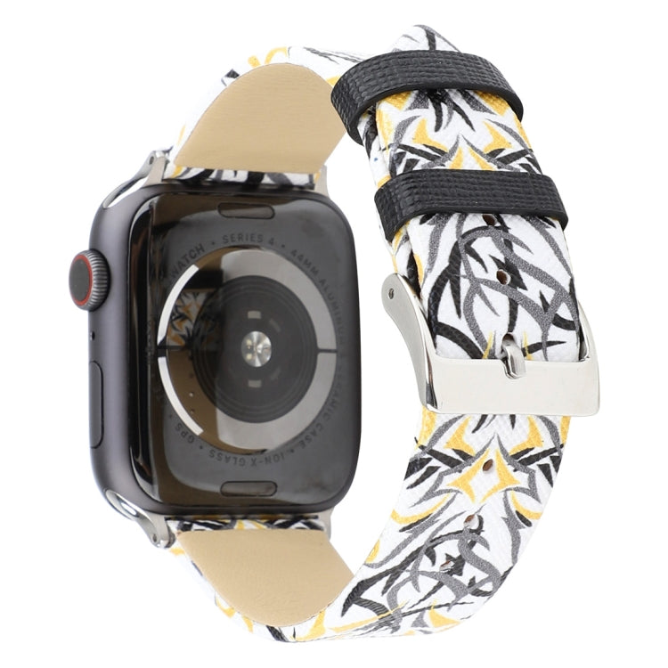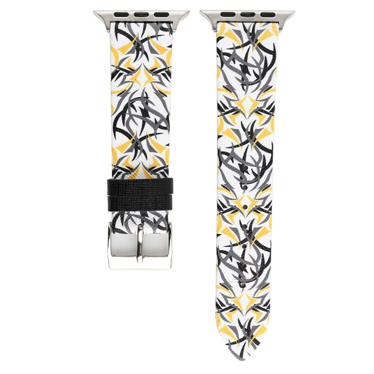 Thorns Printing Genuine Leather Watch Band for Apple Watch Ultra 49mm&Watch Ultra 2 49mm / Series 10 46mm / 9&8&7 45mm / SE 3&SE 2&6&SE&5&4 44mm / 3&2&1 42mm, 44mm
