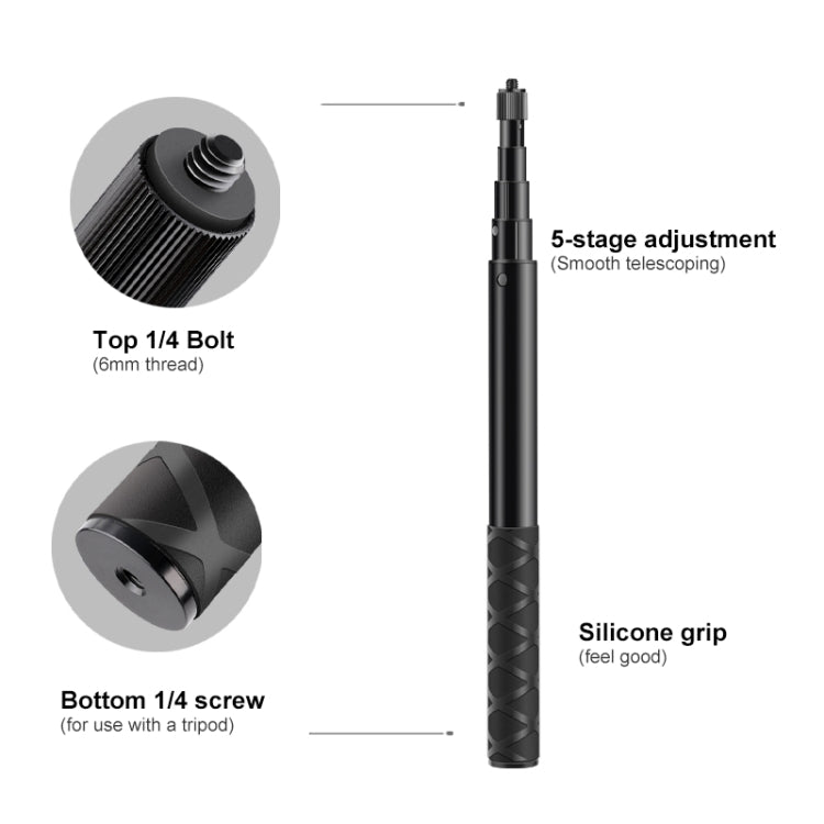 2. The main body is a 5-section telescopic rod, the height after contraction is 28cm, and the maximum height after extension is 112cm;