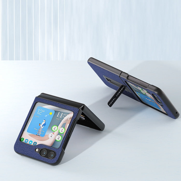 Black Edge Genuine Leather Mino Phone Case with Holder, For Samsung Galaxy Z Flip5, For Samsung Galaxy Z Flip4